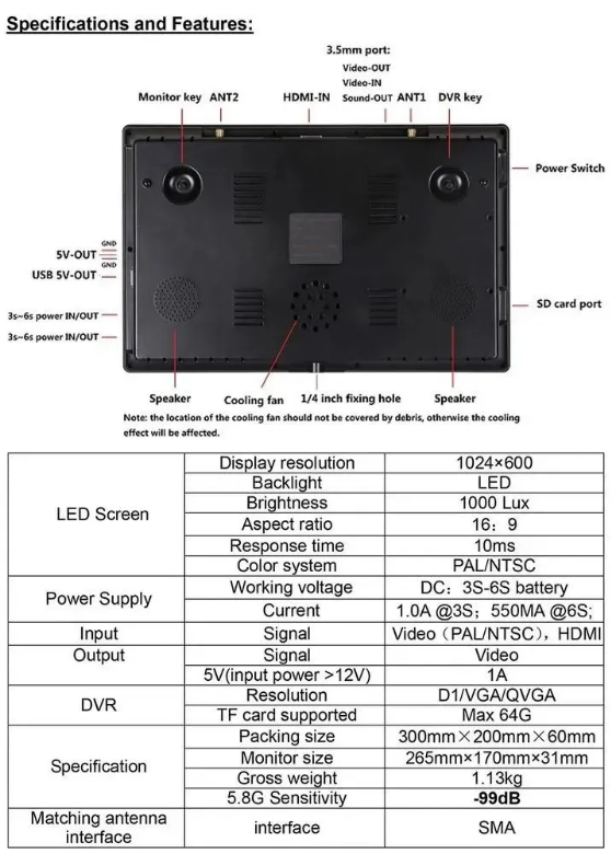 Монитор Hawkeye Captain 10.2'' 5.8GHz 96CH